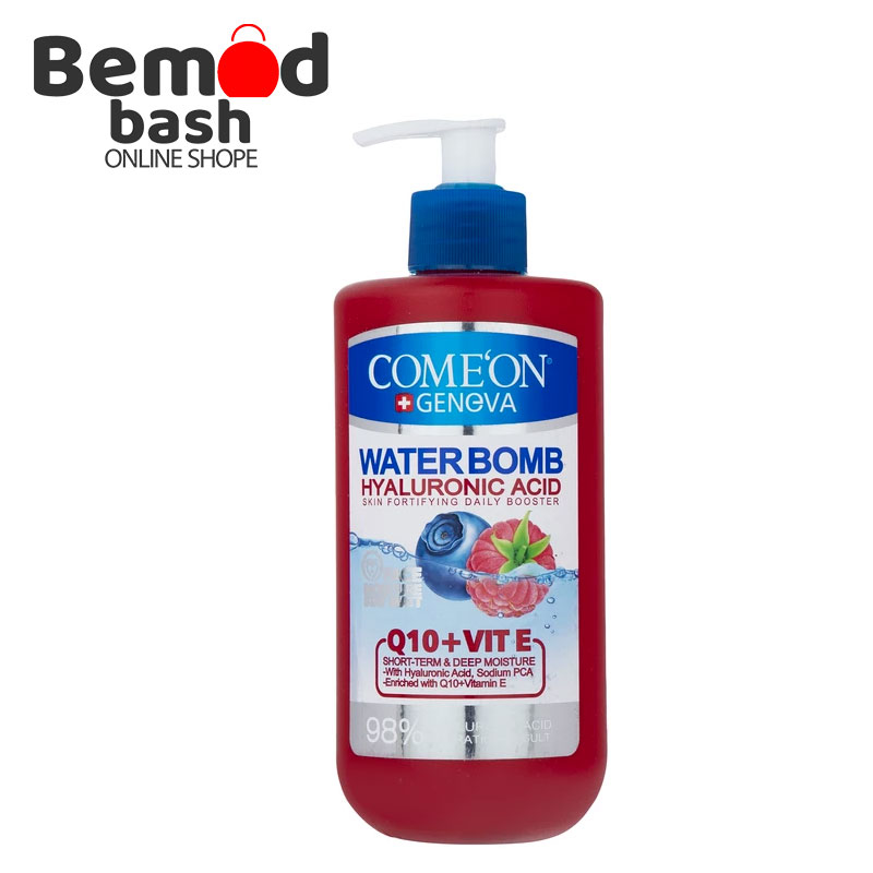 کرم آبرسان کامان سری واتربمب Q10+E حجم 500 میلی لیتر حاوی ویتامین E و Q10، یک بمب آبرسان است چون سرشار از هیالورونیک اسید بوده و بدون اینکه پوست را چرب و براق کند آن را کاملاً آبرسانی و مرطوب می کند.